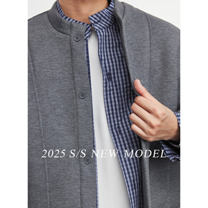 亦止立领假两件复古秋季简约法式休闲夹克男士百搭设计高级感外套