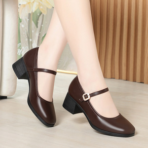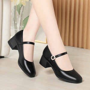 玛丽珍鞋子一字扣单鞋女春秋浅口皮鞋上班女鞋软底工作鞋厂家代发