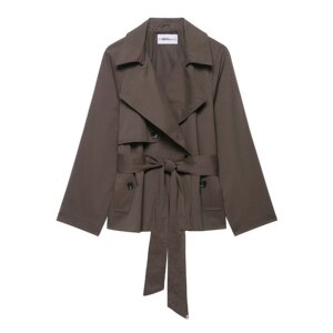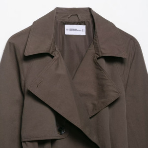 跨境速卖通外贸女装2025秋季新款欧美风翻领长袖配腰带风衣外套