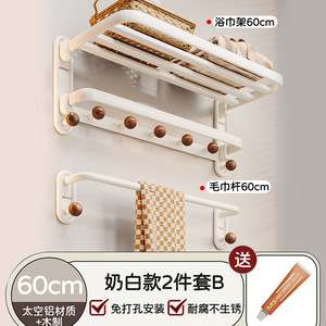 奶油白高端毛巾架卫生间浴室置物架套装免打孔太空铝厕所浴巾架子