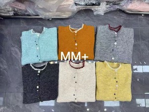 YS温柔风软糯圆领不规则彩扣毛衣外套女秋冬新款宽松针织开衫上衣
