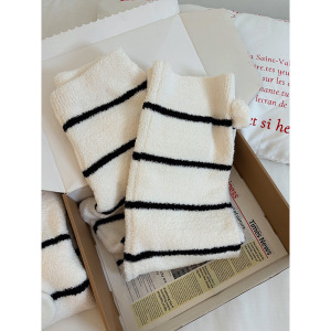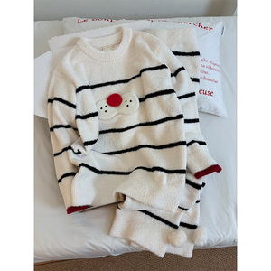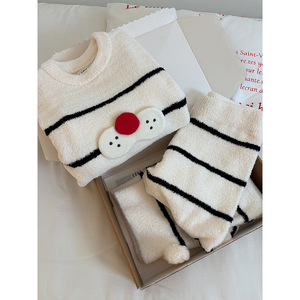 【现货】酷猫条纹针织半边绒睡衣女秋冬季加厚加绒家居服保暖套装