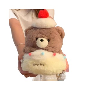 创意小熊蛋糕毛绒玩偶可爱软萌小熊娃娃生日礼物可拉开公仔可抽拉