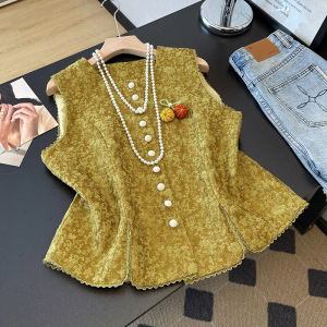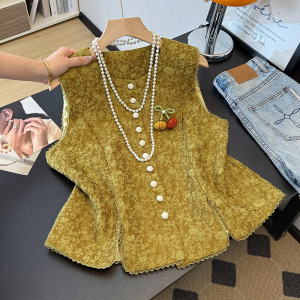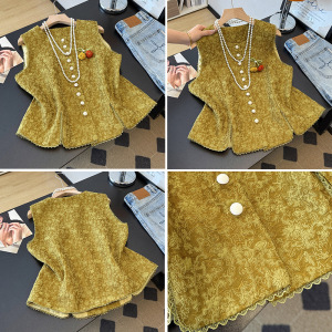 新款新中式国风咖色提花马甲背心女新款秋季宽松复古无袖上衣中东