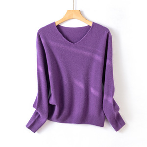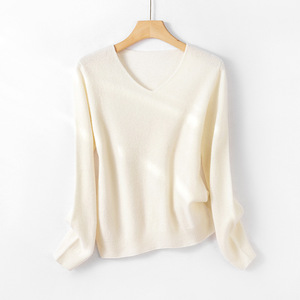 100羊毛针织衫秋冬新款V领羊毛衫女士百搭针织内搭纯色打底衫上衣