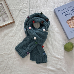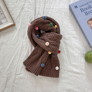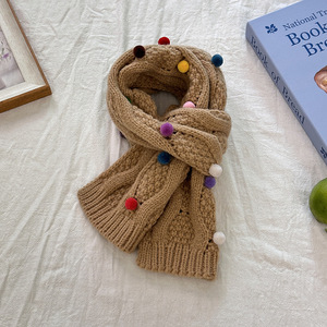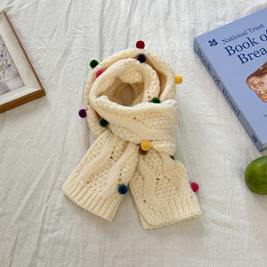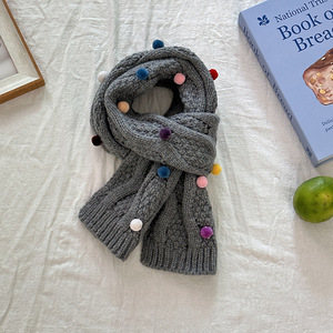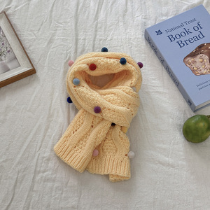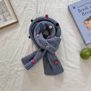 围巾韩系氛围感冬季新款百搭时尚加厚保暖护颈彩色球围脖围巾批发
