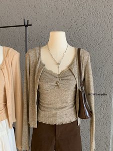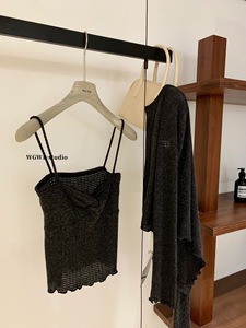 WGWE 7066广州十三行女装2025早秋装新款背心吊带+针织开衫套装