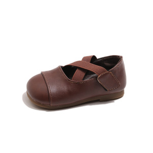 复古儿童皮鞋秋季新款女童单鞋浅口豆豆鞋软底交叉韩版芭蕾舞鞋子