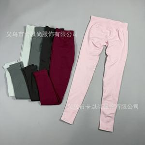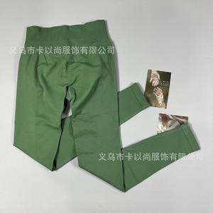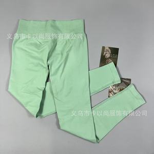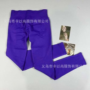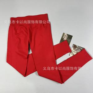 速卖通热卖高腰提臀瑜伽裤女外穿跑步运动裤螺纹腰头健身裤DF同款