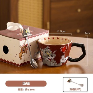 猫和老鼠马克杯大容量可爱陶瓷杯带勺学生早餐牛奶杯生日礼物礼品