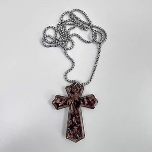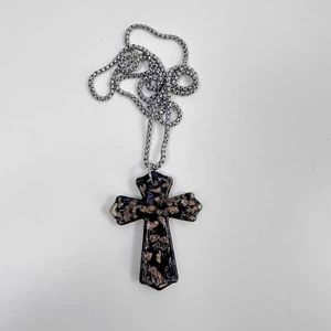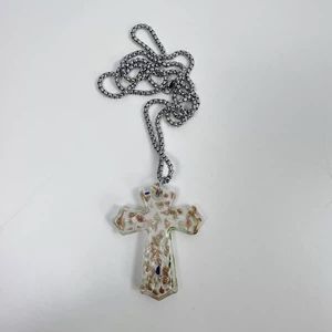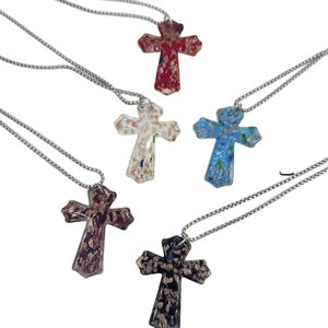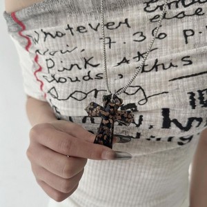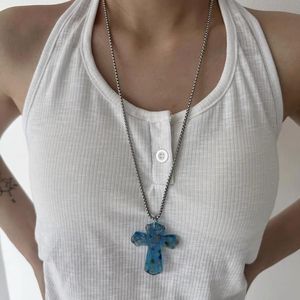 夸张琉璃洒金十字架吊坠长款项链y2k千禧复古辣妹毛衣链高颜值新