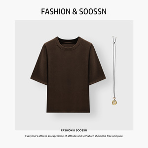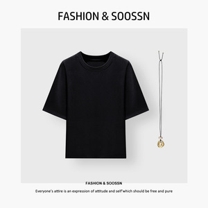 圆领中袖t恤女半袖内搭打底衫早秋2025新五分袖可外穿上衣配项链