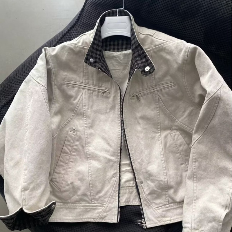 国潮设计感盘扣立领短宽版外套2025春季新中式重磅工装夹克衫男潮