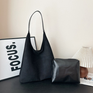 韩国麂皮绒水桶包包女休闲通勤单肩托特包秋冬2025新款腋下子母包