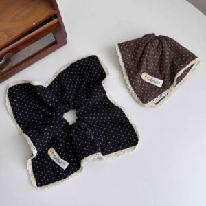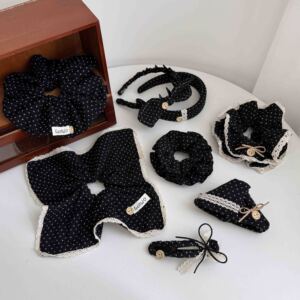 法式赫本风针织波点大肠发圈韩系蕾丝大号盘发三角抓夹蝴蝶结发箍
