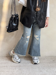 2025秋季新款童装 女童破洞毛边微喇裤 儿童宝宝鱼尾牛仔喇叭裤