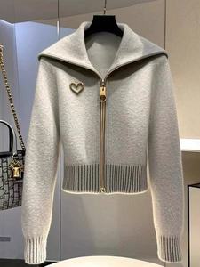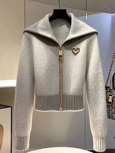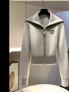 韩系chic灰色大翻领毛衣开衫外套女款2025冬季加厚超好看保暖上衣