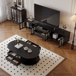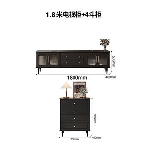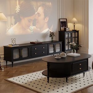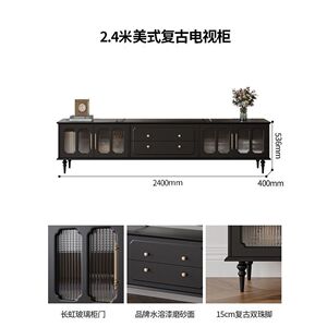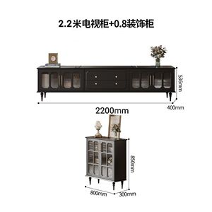 电视柜茶几组合2025新款法式美式复古小户型客厅实木黑色电视机柜