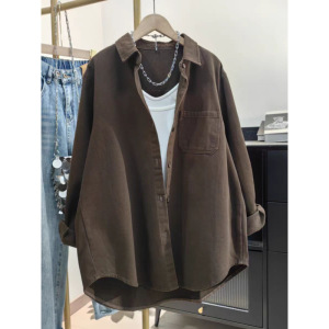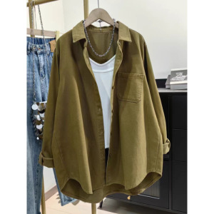 现货秋季纯色长袖衬衫女春秋新款韩版休闲宽松上衣中长款工装外套