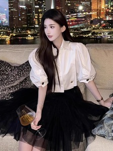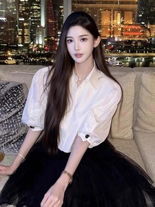 250790秋季高级感小众不撞衫上衣独特漂亮减龄洋气白色泡泡袖衬衫