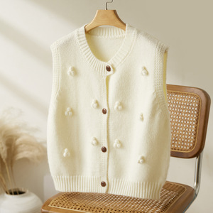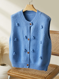 厂家直销原创针织衫背心2025秋装新款无袖坎肩马甲立体提花上衣