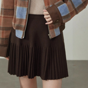 高腰百褶针织半身裙女2025秋冬新款小众百搭显瘦气质a字短裙子潮