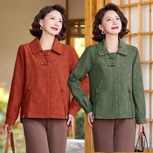 妈妈秋装外套翻领洋气时尚开衫中老年女装春秋季休闲夹克短款上衣