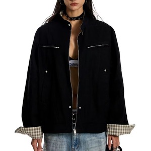 秋季美式复古水洗帆布工装廓形夹克男女宽松休闲外套上衣