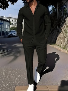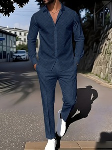 跨境欧美男装春秋季格子方粒印花舒适基础通勤男士休闲时尚套装