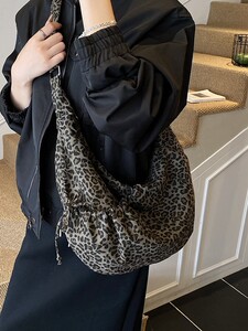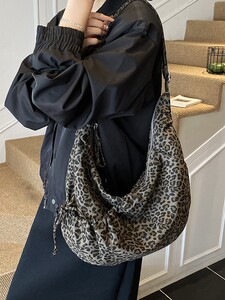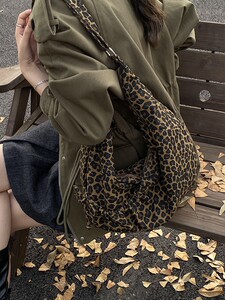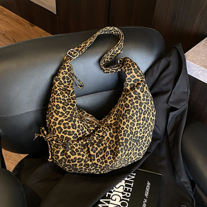 跨境韩国新款小众豹纹辣妹斜挎饺子包设计时尚休闲百搭洋气单肩包