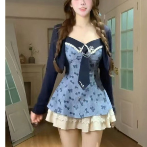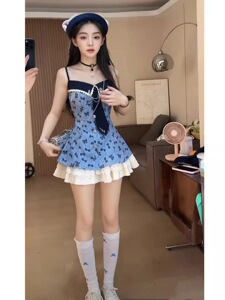 纯欲风甜美短裙夏季收腰显瘦设计感撞色拼接碎花绝美吊带裙