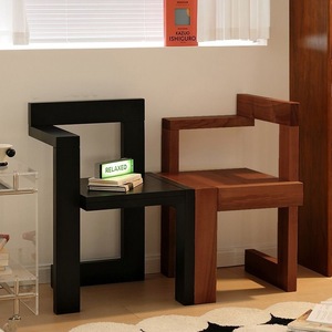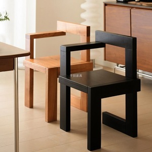 中古实木餐椅北欧简约设计师书桌复古创意扶手单人休闲梳妆椅凳子