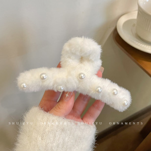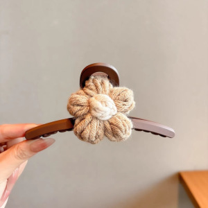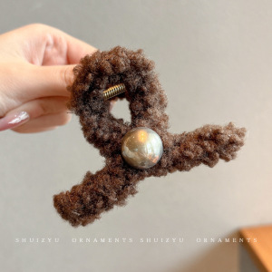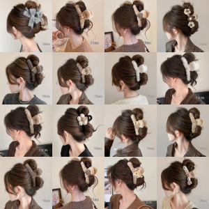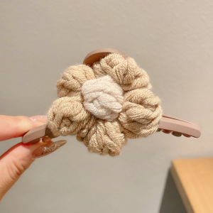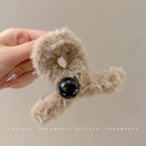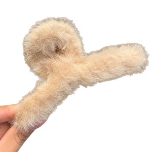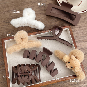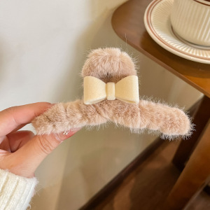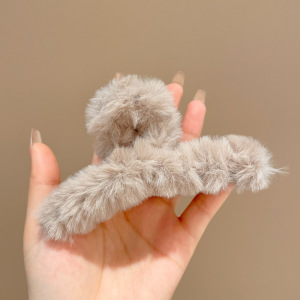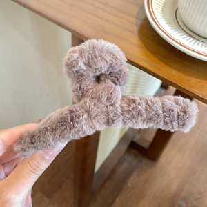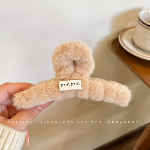 秋冬韩系可爱百搭抓夹女网红气质奶咖色毛绒发夹冬季鲨鱼夹子头饰