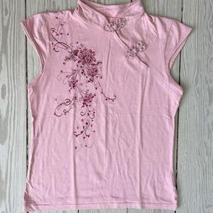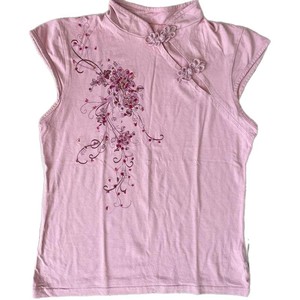 2025年夏季新款文艺风新中式花朵印花宽松斜扣气质短袖T恤上衣女
