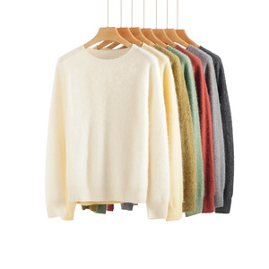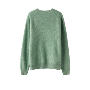 高定浮利圆领羊绒羊毛拉绒衫开衫无缝一体花纱针织毛衣早秋新