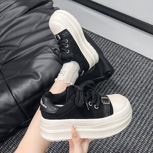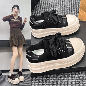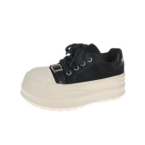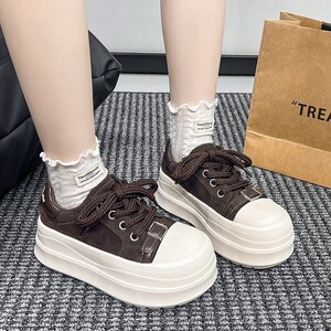 真皮版~2025年秋季舒适松糕厚底圆头系带运动休闲女单鞋四季单鞋