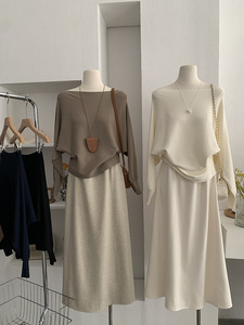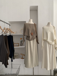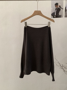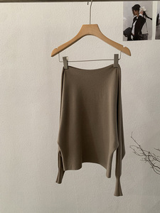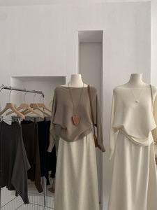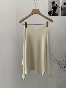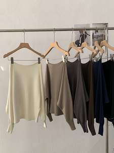 欧玛莱 韩系一字领蝙蝠袖纯色修身显瘦针织衫女秋季新款毛衣 4799