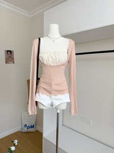 温柔氛围感褶皱纱打底花边圆领毛针织衫女2025新款秋季抹胸内搭