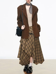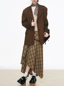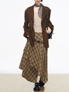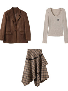WESTAYONE麂皮绒西装外套女小个子2025新款+流苏格纹裙