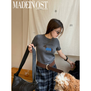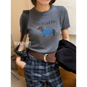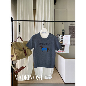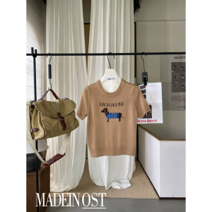 MADEIN OST-6羊毛小狗刺绣字母短袖毛衣(含6羊毛)S8789
