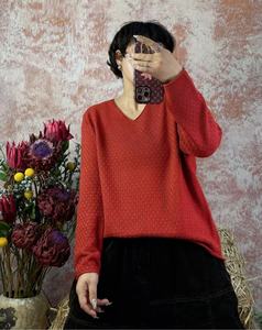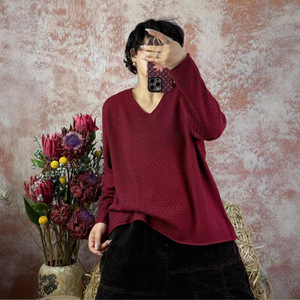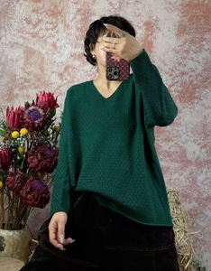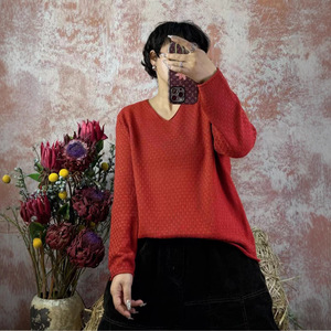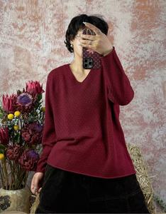 新品韩版宽松休闲V领套头棉线百搭长袖女毛衣简约针织衫女