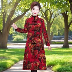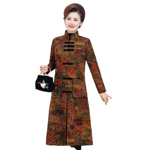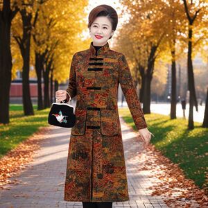 妈妈装秋冬新中式立领风衣中长款40-50岁60中老年女装加绒厚外套