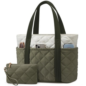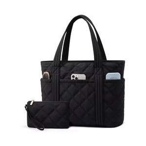 亚马逊热卖菱格绗缝新款女士单肩包托特包15.6寸笔记本旅行手提包