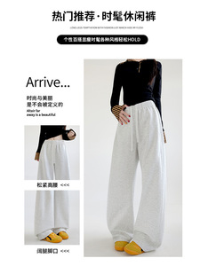 高品质美式弯刀裤女春秋新款显瘦宽松阔腿裤休闲慵懒风高腰运动裤