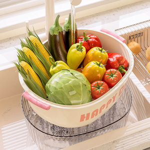 厨房洗菜篮超大号双层塑料框子筛镂空水果清洗收纳筐沥水篮水果篮