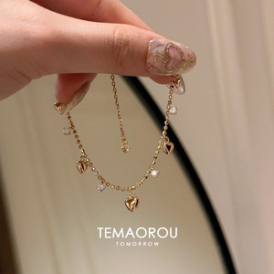 锆石爱心吊坠手链女时尚精致精致气质手环轻奢高级感手环小众设计