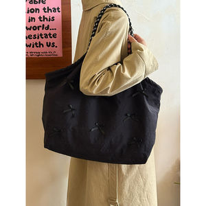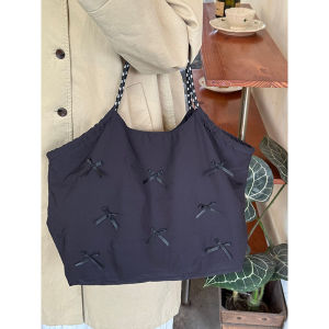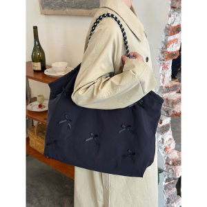 大容量ins蝴蝶结帆布包秋冬新款复古高级感单肩包小众百搭托特包