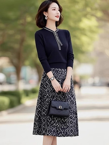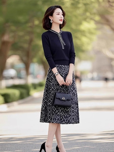2025春秋季新款时尚气质简约休闲小香风针织衫+高腰显瘦半身裙女