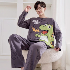 春秋青年睡衣男长袖长裤薄款大童卡通加大码初中学生套装2025新款