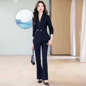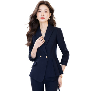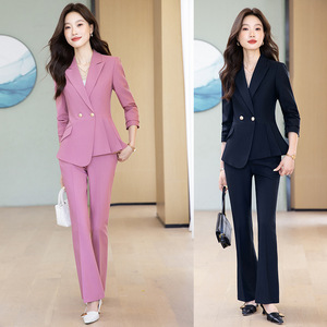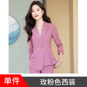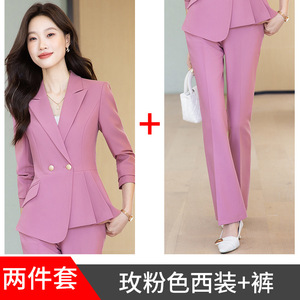 2025新款紫色时尚职业西装套装新款西服外套高级感正装修身套裤粉